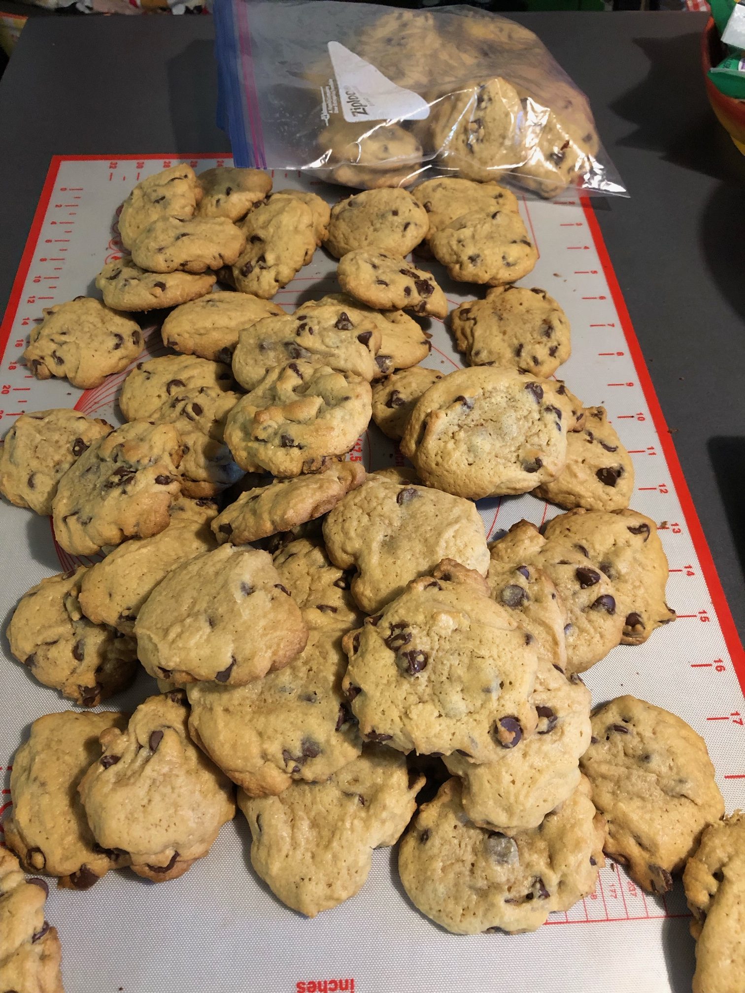 Earlier, I baked a batch of my famous chocolate chip cookies. People tell me they’re delicious, which I’ll happily believe. I brought a plate of cookies over to the guy across the hall. The nurse who was tending to him sat behind the door, making it hard to see. And, she gets paid for that! Another nurse was coming by, and I asked her if the man could eat cookies. She said no. I try to help as much as I can.